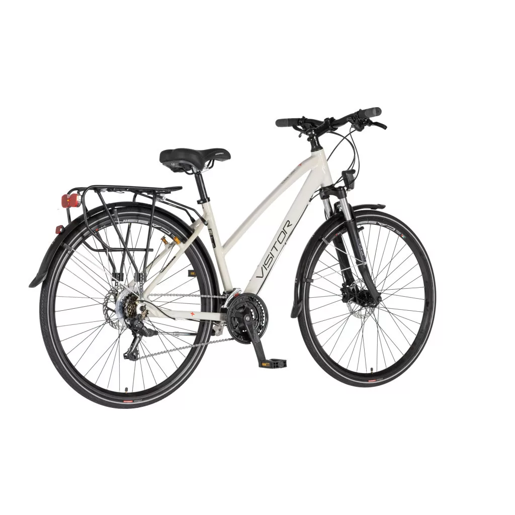 Váz: AlumíniumVilla: Visitor teleszkópVázméret: 18"Kerékméret: 622Kormány: Fekete hajlított kormányKormányszár: A-head kormányszárMarkolat: Herrmans markolatPedál: MűanyagHajtómű: 48/38/28 fogas hajtóműMonoblokk: Thun Topaz 122mmLánc: KMC Z-30Első váltó: Shimano TourneyHátsó váltó: Shimano TourneyVáltókar: Shimano Altus fékváltókar 3x7Sebesség fokozatok száma: 21Felni: 622 duplafalú 32 lukasElső agy: Joytech 36 lukas agyHátsó agy: Joytech 36 lukas agyKöpeny: Mitas Flash Reflex fényvisszaverősNyereg: Montegrappa SwanElső fék: Hidraulikus tárcsafékHátsó fék: Hidraulikus tárcsafékTartozék: Kitámasztó, sárvédő, csomagtartó, elemes világításKompatibilitás: tárcsafék-, kulacstartó felfogatás